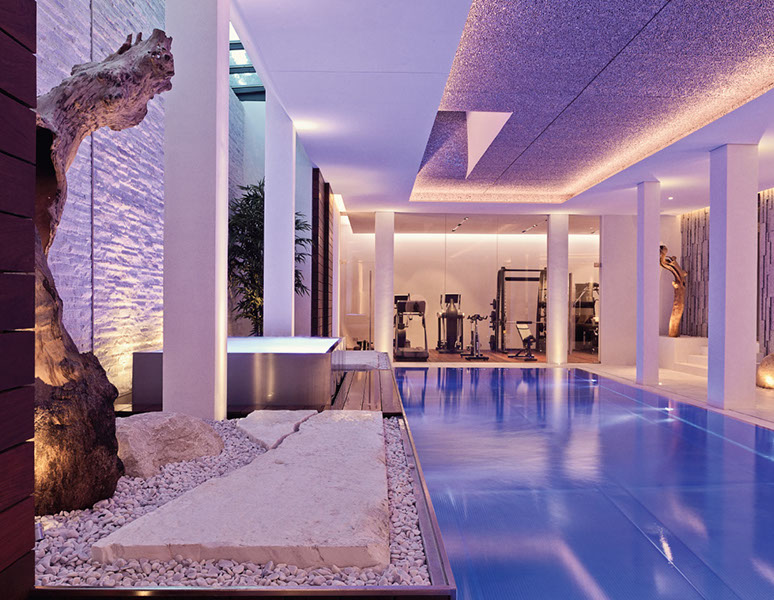 Bei diesem hochwertigen Objekt verwendeten wir im Steinbruch vorsortiertes weißes Natursteinmaterial mit den unterschiedlichsten Oberflächen, wie z. B. geschliffen, gestockt, gespalten und gebürstet.